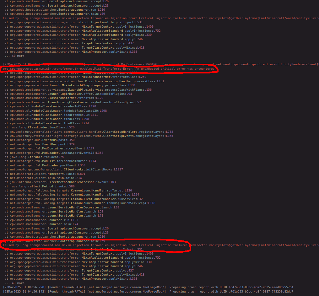 [04Apr2025 22:53:51.730] [Render thread/ERROR] [net.neoforged.fml.ModLoader/]: Cowardly refusing to send event net.neoforged.neoforge.client.event.TextureAtlasStitchedEvent to a broken mod state